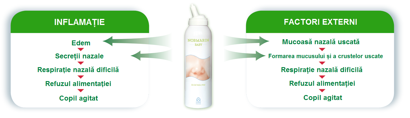 Cum poate fi de ajutor NORMARIN BABY pentru bebelușul dvs? NORMARIN BABY - spray pentru irigare nazală cu penetrare profundă. Recomandat pentru igiena nazală zilnică la
